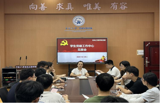 在学院党委的领导和指导下,机电工程学院学生党建工作中心正式成立。2025年9月29日,学生党建工作中心第一届学生干部在中铝科技大楼C202会议室举行师生见面会。中心主任肖楚楚、学院组织干事戴泽宇、指导老师刘璇,与20名学生干部一起参加。