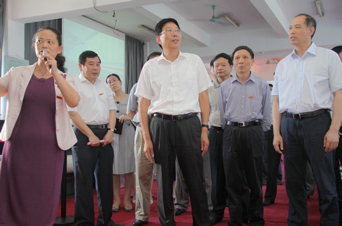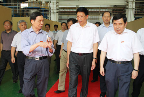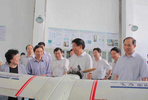 省长徐守盛来校调研 表示全力支持我校创新发展发布时间:2011-08-25 浏览次数: 7月21日下午,省委副书记、省长徐守盛来到我校调研,考察了高速列车研究中心、高性能复杂制造国家重点实验室和粉末冶金研究院,并与我校院士和领导进行座谈,就湖南博云航空工业园基地、c919大飞机实验基地及刹车系统工程技术中心的建设等问题现场办公。徐守盛要求省直相关部门和长沙市全力支持我校发展创新,并寄语我校立足学科和技术优势,着眼未来,抢抓机遇,继续攀登科研高峰,为建设“四化两型”和富民强省再创佳绩、再立新功。 省委常委、副省长郭开朗,省委常委、长株潭试验区工委书记陈肇雄,及湖南省、长沙市有关部门负责人参加调研。