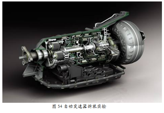 实验功能:观察拆装自动变速器,认识其结构与组成,认识液力变矩器、行星齿轮机构、液压油路等。