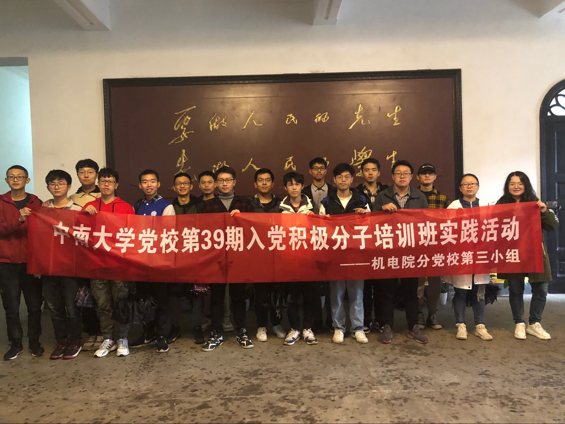 2019年10月27日上午10时,机电工程学院分党校第14期入党积极分子培训班第三组学员参观湖南第一师范学院,本次实践活动由第三组组长赵天意同学带队。
