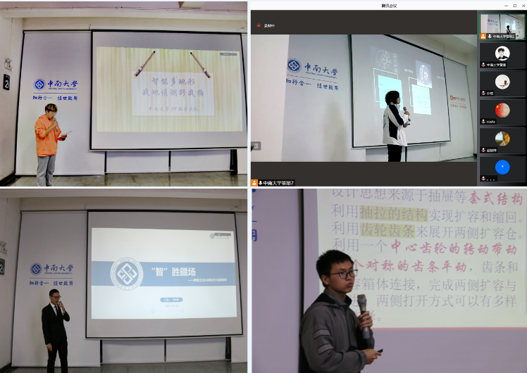 答辩结束后云忠副院长进行总结,他从创意背景、设计过程等方面对各队伍的付出做出了肯定,同时指出参赛作品存在的不足,希望同学们结合“知行合一 经世致用”的校训,把专业知识和实际应用相结合,把理想追求同国家需求相结合。本次比赛促进了国防科技大学与中南大学的学术交流,增进两校友谊,为两校学生交流提供了平台。