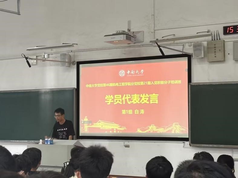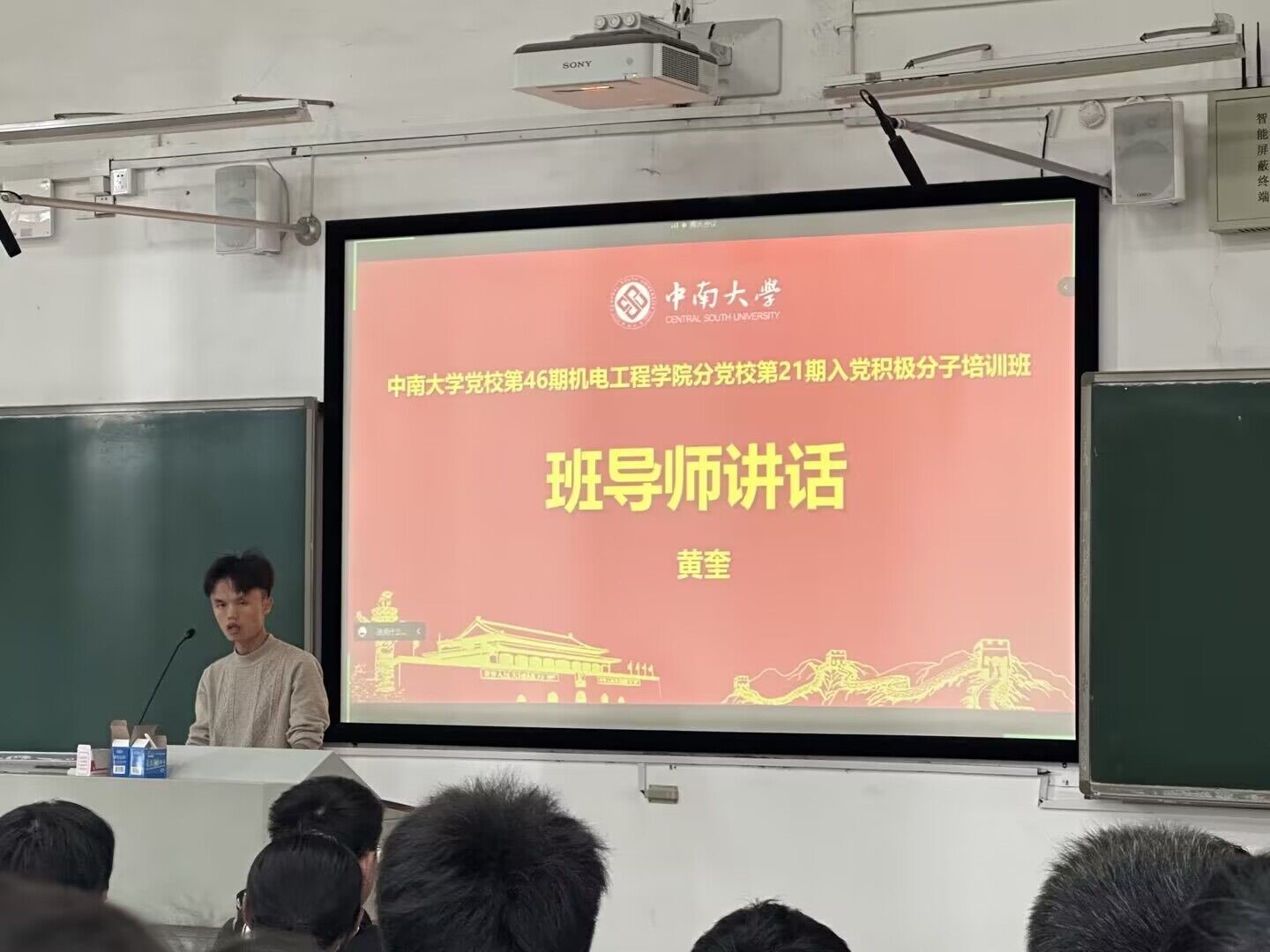 11月2日下午,中南大学党校第46期机电工程学院分党校第21期入党积极分子培训班开班仪式在中南大学新校区D206教室成功举行。中南大学党校督导戴维国书记,我院党委副书记、分党校副校长黄凯老师,分党校培训班班导黄奎老师出席,培训班全体学员参加典礼。仪式由单秋会老师主持。