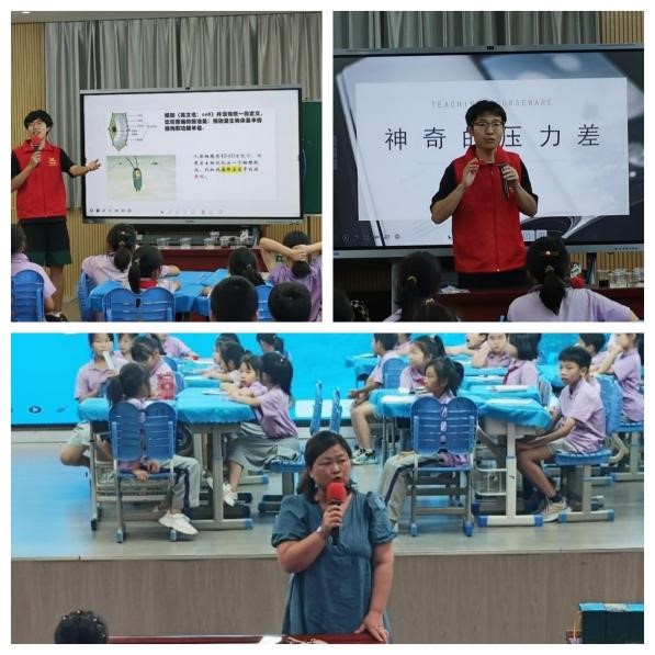 活动过程中,为调动小朋友的课堂积极性,提高上课的专注力,志愿者们组织了问题抢答环节,回答正确的同学可以获得奖励。现场的小朋友们积极参与,踊跃回答问题,取得了很好的效果。一个小时后,科普课程在小朋友们的欢声笑语中落下帷幕。副校长李敏发表讲话,对孩子们的出色表现表示肯定,对志愿者们的精彩课堂表示感谢。
